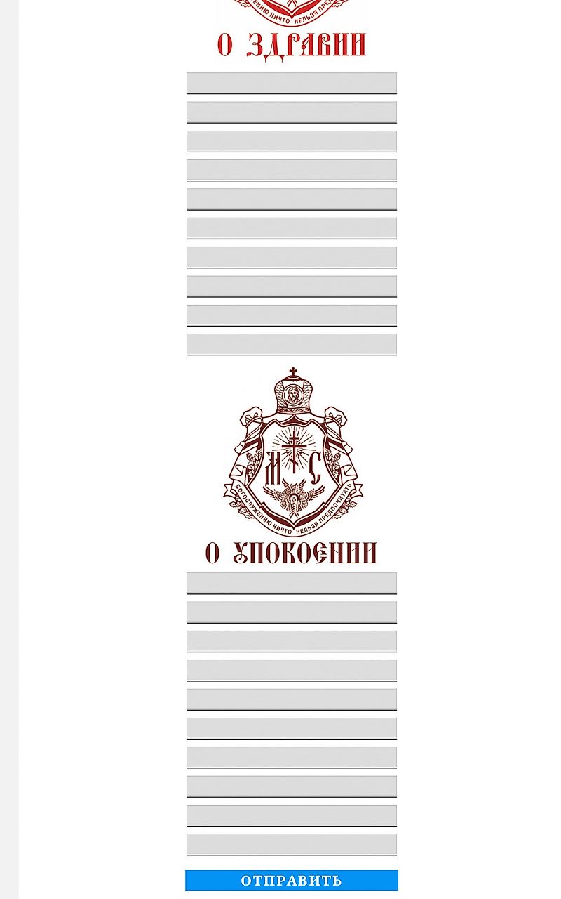 Записки подаются в родительном падеже. Напишите имена и нажмите кнопку "Отправить".