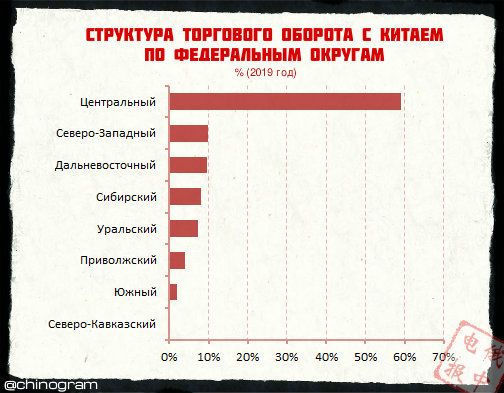 ☝️Проблема только заключается в том, что основная часть экспортно-импортных потоков с Китаем регистрируется в зоне ответственности Московской таможни и Центрального таможенного управления. На долю Дальнего Востока приходится около 10% от общего объема торгового оборота и только 7% от поставок нефти и газа, которые составляют основу российского экспорта в Китай. Это не значит, что эта оценка не может быть верной, но она совершенно точно нерепрезентативна.