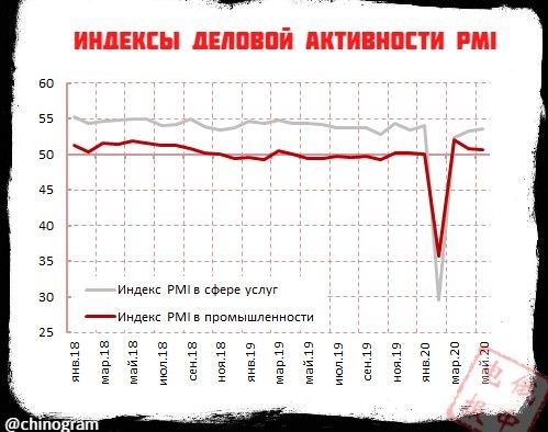 Итоги мая в экономике Китая: производство растет, спрос - не везде. Среднее значение индекса восстановления экономической активности от China International Capital Corporation (CICC) в мае выросло до 91% против 87% в апреле. Продолжился рост загрузки мощностей в сталелитейной, угольной промышленности и производстве цемента. Объем сделок со строительной сталью с начала мая вырос на 16% г/г. Темпы снижения продаж автомобилей замедлились до 5% г/г против 6% в апреле. Объем продаж недвижимости в 30 городах КНР снизился по сравнению с прошлым годом на 12%.