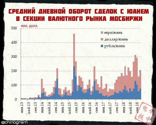 Объем сделок с китайской валютой на Мосбирже вырос в ноябре на 29% по сравнению с аналогичным периодом прошлого года. Всего с начало года объем сделок с юанем увеличился в 2 раза. Таким образом, к концу года рост операций с китайской валютой на российском рынке замедлился. Максимальное значение показателя в текущем году было зафиксировано в августе-сентябре, когда объем сделок составлял около 300 млн. долл. в день.