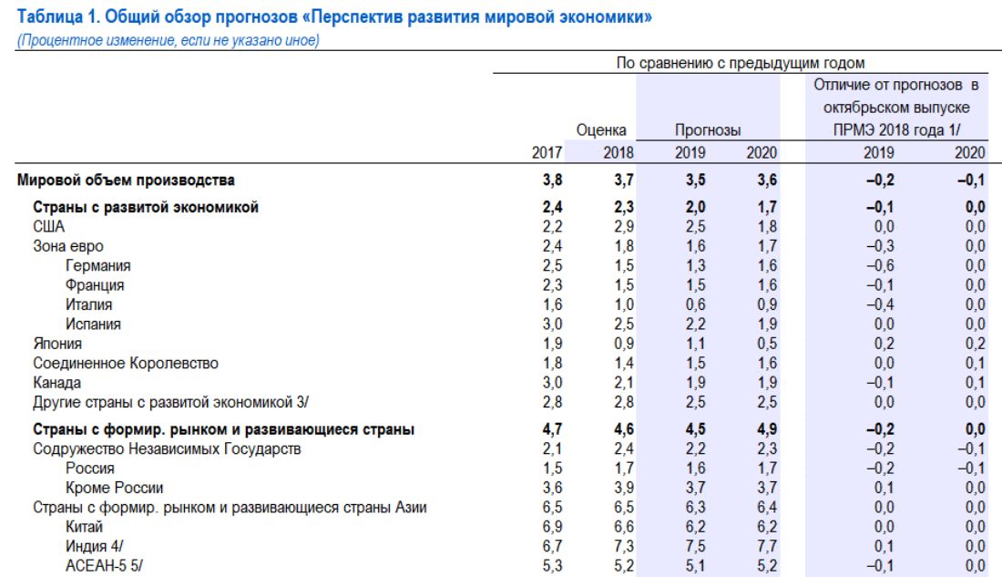 Из прогноза МВФ о перспективах развития мировой экономики: