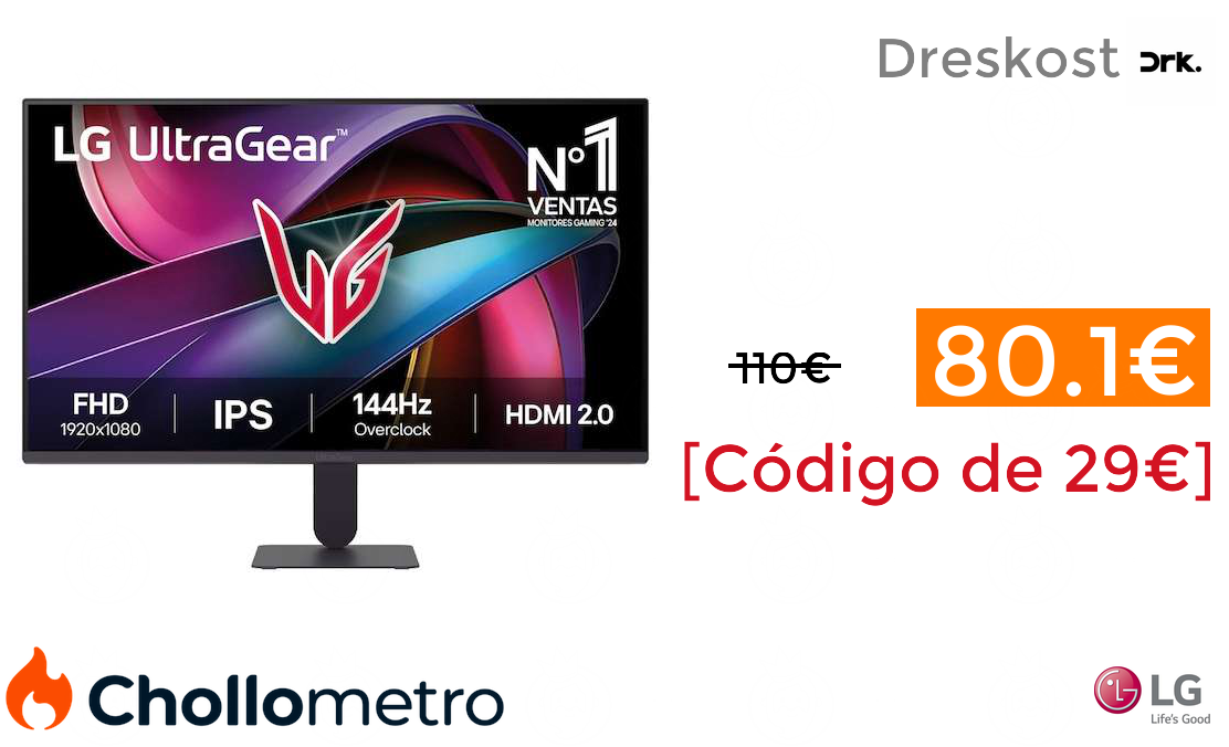 🔹Monitor Gaming LG UltraGear, 27", IPS, FHD 144Hz, 1 ms [27G411AX-B.OBSPTO] 80.11€ (PVP: 110€) ❗️🔥
