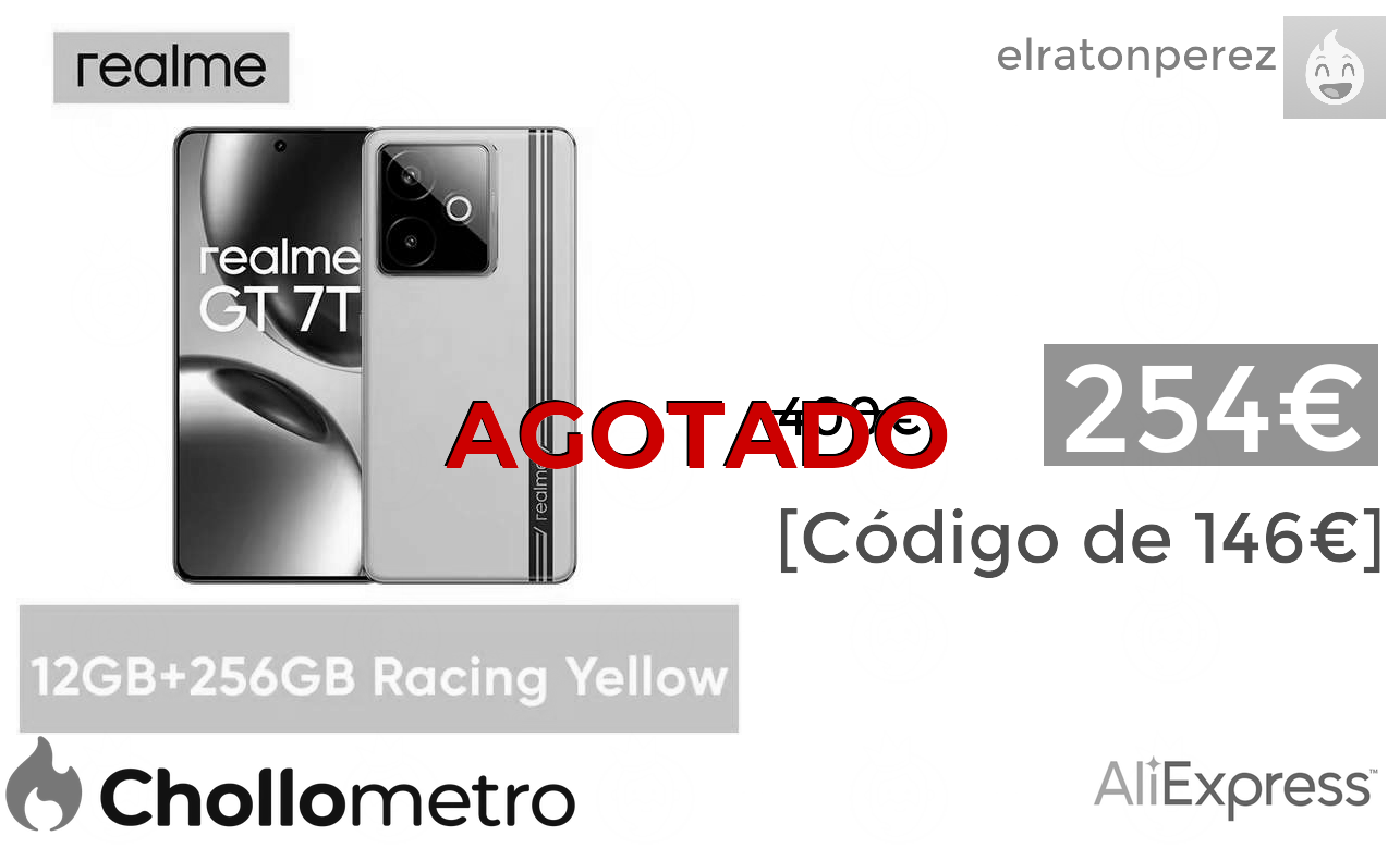 🔹Realme GT 7T 12+256GB. Smartphone 5G, MediaTek 8400-MAX, 7000mAh, 120W Ultra Charge, 6.8", versión global 254.26€ (PVP: 400€) ❗️🔥
