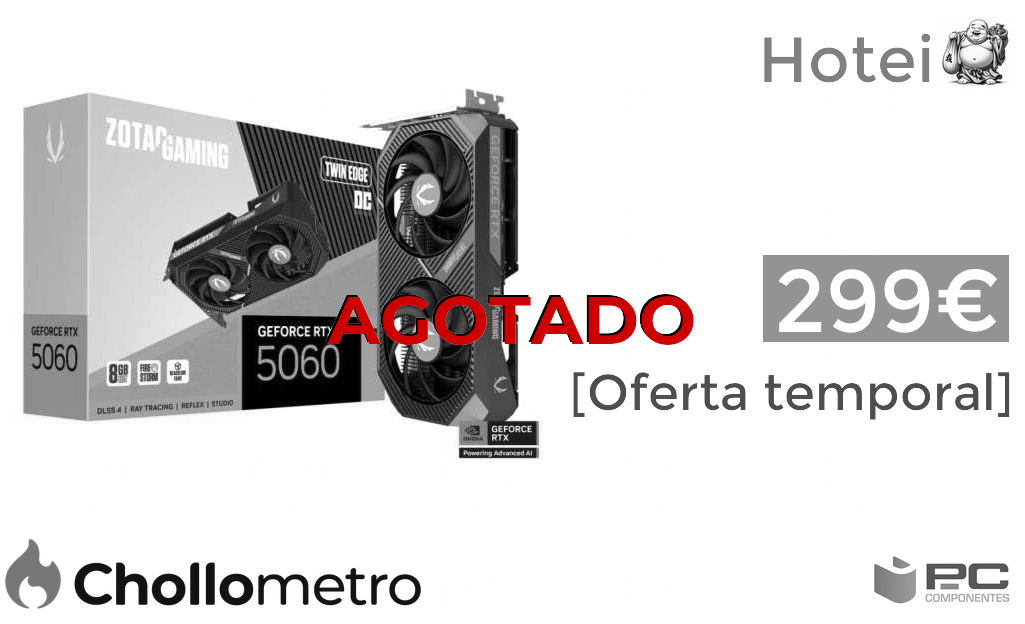 🔹Tarjeta Gráfica ZOTAC GAMING GeForce RTX 5060 Twin Edge OC 8GB GDDR7 Reflex 2 RTX AI DLSS4 5 años de garantia 299€ ❗️🔥
