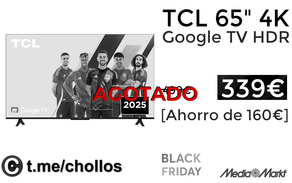 🔹TCL 65" 4K Google TV HDR solo 339€❗️✔️ (PVP: +499€)