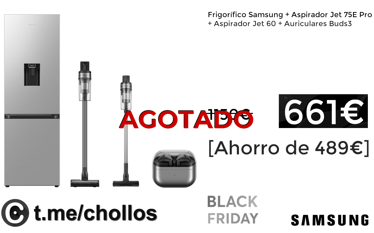 🔹Frigorífico Samsung + Aspirador Jet 75E Pro + Aspirador Jet 60 + Auriculares Buds3 solo 661€❗️✔️ (PVP: +1150€)