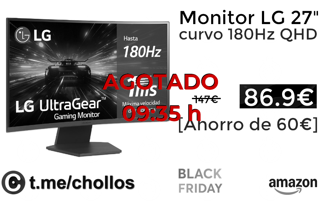 🔹Monitor LG 27" curvo 180Hz QHD solo 86.9€❗️✔️ (PVP: +147€)