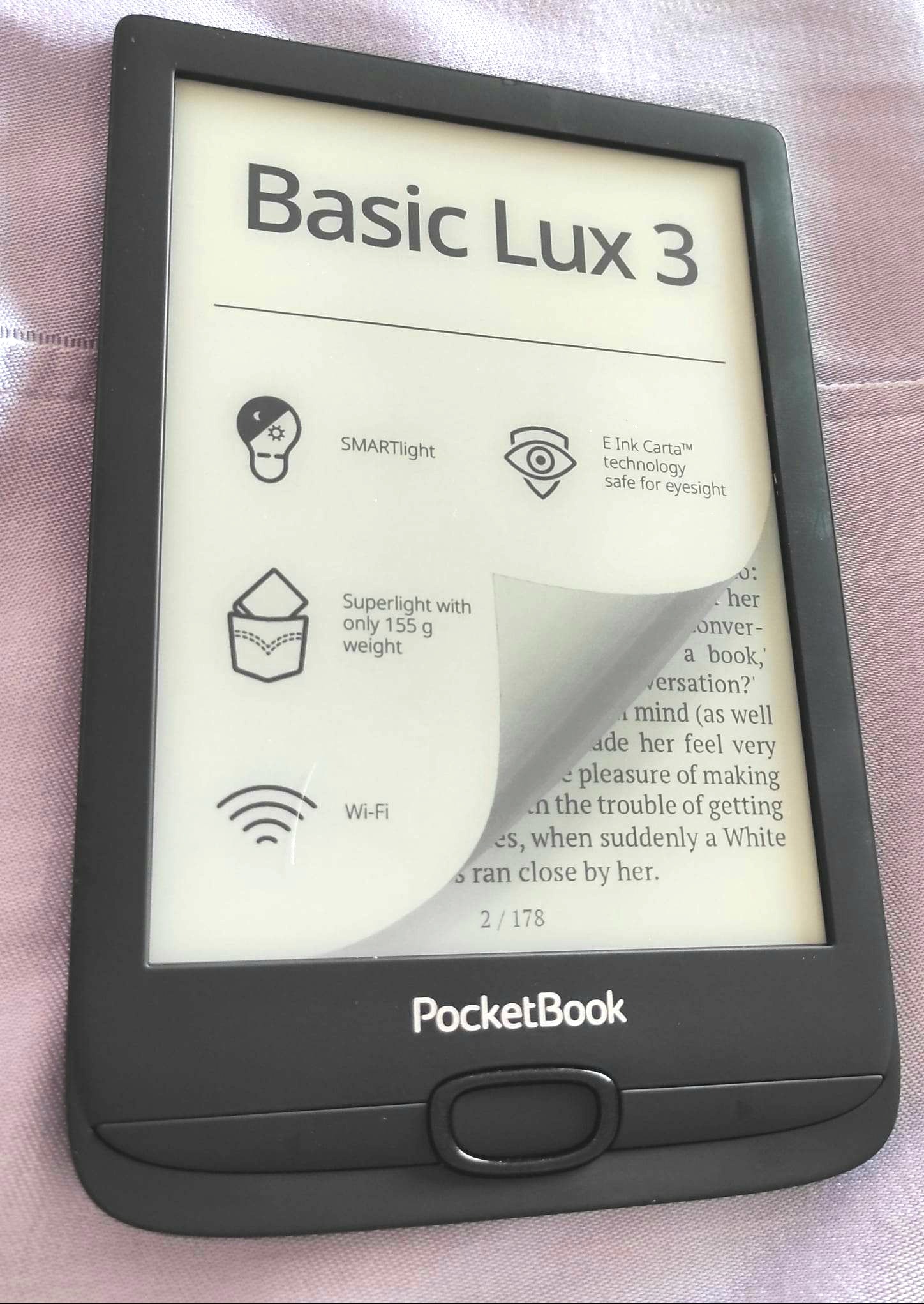 Купил новый букридер. Почему именно этот? Все очень просто. PocketBook Basic Lux - единственная линейка, в которой совмещаются три очень важные для меня качества. Во-первых, он читает FB2. Во-вторых, у него есть подсветка. И, в-третьих, у него не сенсорный экран.