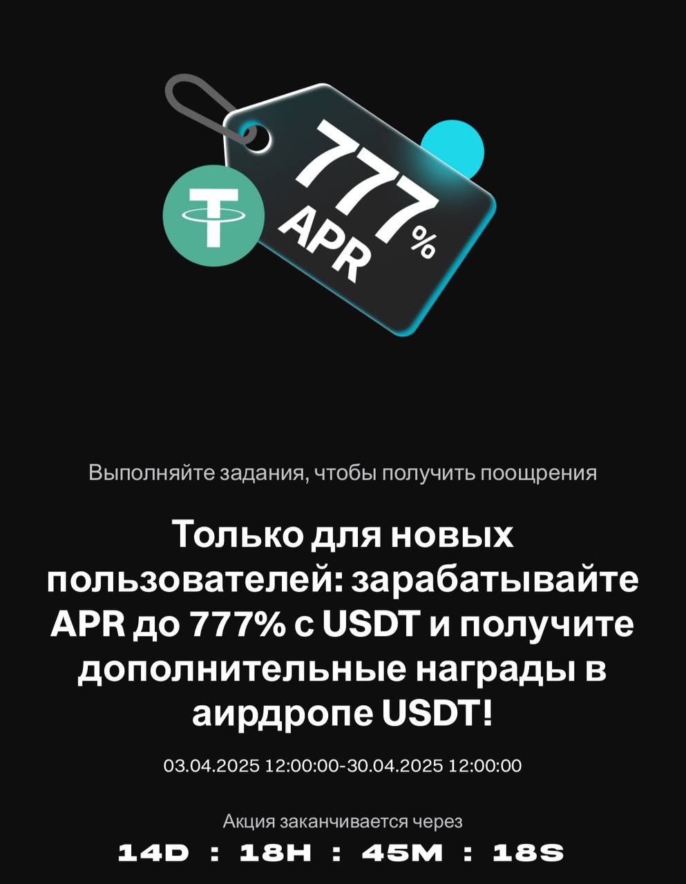 Акция для новичков на Bitget: до 777% APR + аирдроп до 20 USDT.