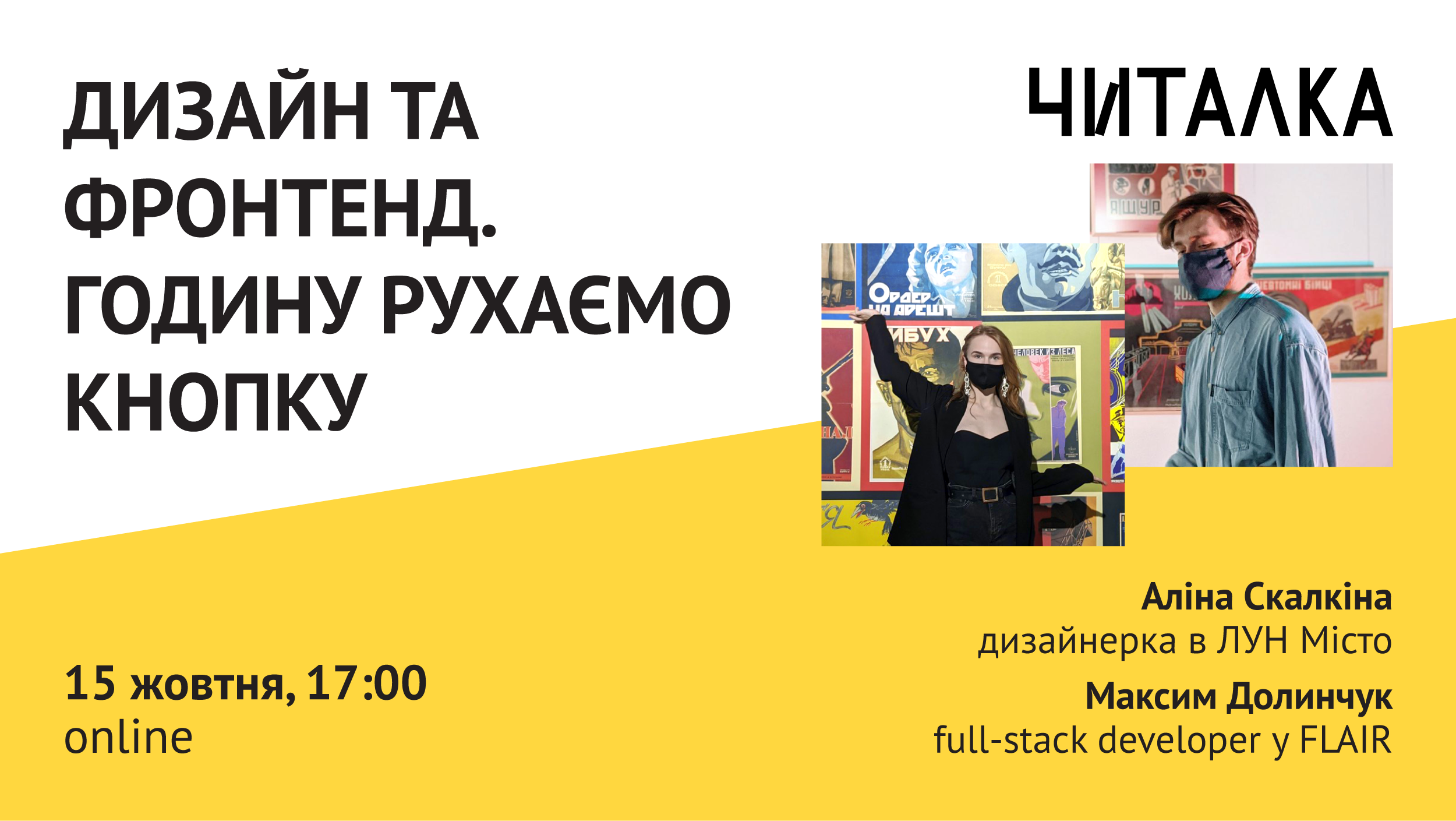 Наступного тижня відбудеться лекція "Дизайн та фронтенд. Годину рухаємо кнопку" від наших друзів з ЛУН: Аліна — дизайнерка, і Максим — Full-Stack Developer.
