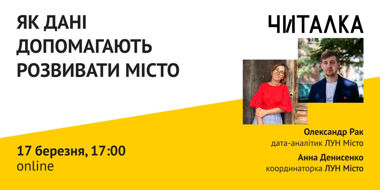 Наших цьоготижневих гостей ви можете знати за їх картами якості повітря та загальної якості життя, а також за купою статей та візуалізацій пульсу нашого любого Києва. Так, команда проєкту ЛУН Місто у нас в гостях! Вже цієї середи Анна та Олександр розкажуть, як та навіщо вони збирають та аналізують купу різних даних про якість життя в Києві, а також повідають, де шукати ті дані та які інструменти допоможуть з їх аналізом.
