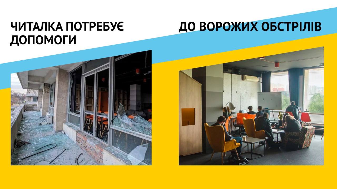 Зараз ми разом з компанією "ЛУН" оголошуємо другий етап збору на відновлення коворкінгу "Читалка".