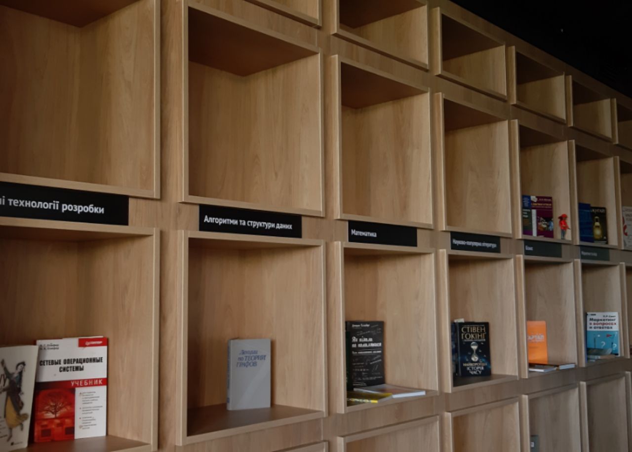 А ще у нас є купа полиць з книжками на різні теми - від PR та маркетингу до алгоритмів та структур даних. Якщо в тебе є література, яку ти вже прочитав і ти вважаєш, що можеш віддати її у користування відвідувачам Читалки - не соромся, принось, ми будемо лише раді поповненню нашого книжкового фонду 😊
