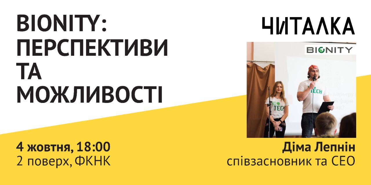 Хочете послухати про щось надзвичайно цікаве та незвичайне? Ні, ви не вгадали, це не чергова лекція про машинне навчання. Цього разу, Діма Лепнін, представник компанії Bionity, розкаже вам, що таке біотехнології та з чим їх їдять. Також ви отримаєте інформацію, як можна долучитись до цієї команди новаторів - і разом реалізовувати ініціативи! Чекаємо на вас 4 жовтня о 18:00 у "Читалці"! Буде цікаво!😊