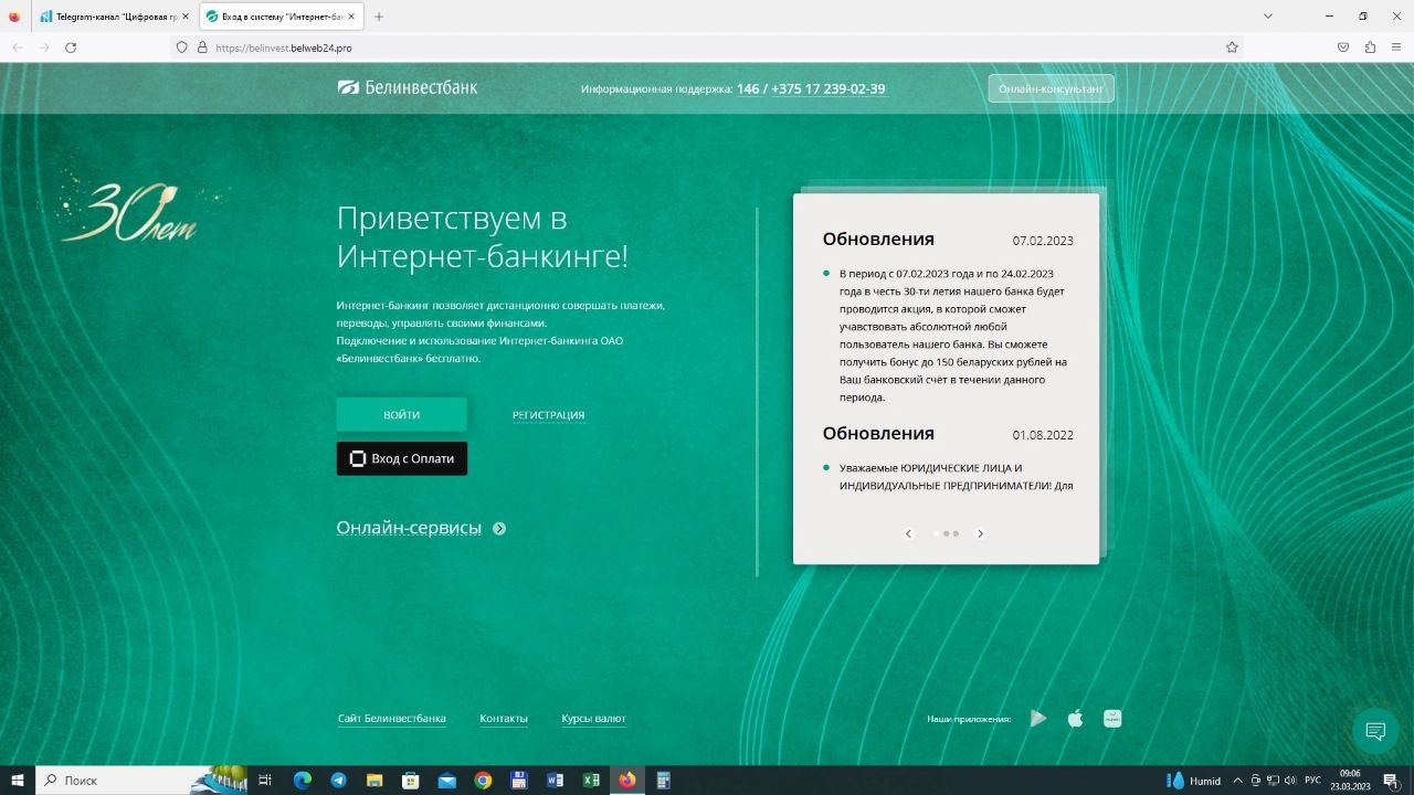 Поддельный сайт известного банка https://belinvest24bank-by.online