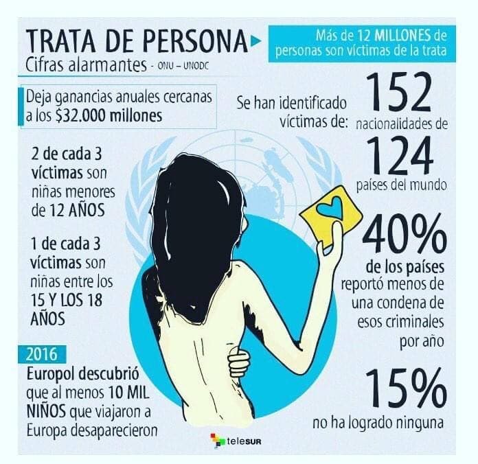 En 2018, hubo alrededor de 50.000 víctimas de la trata de personas y 148 países denunciaron su existencia.