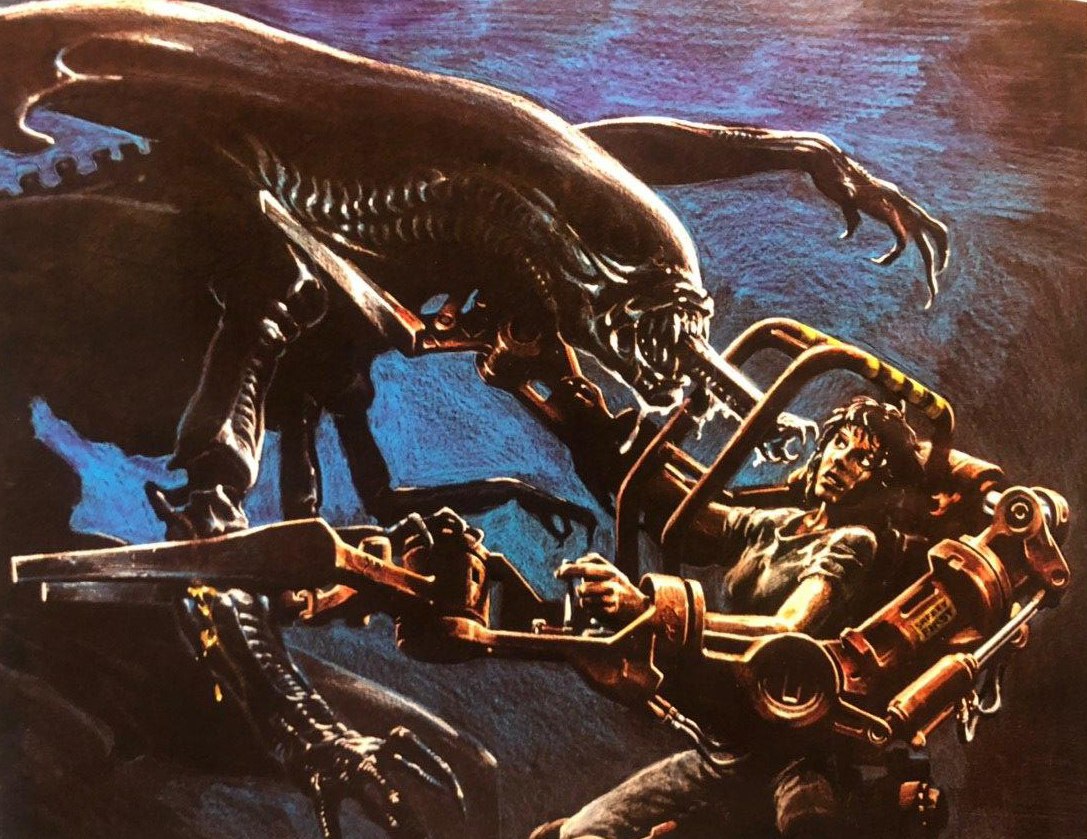 ​​Ранний набросок Джеймса Кэмерона к культовой схватке между Рипли и королевой в «Чужих». Режиссер нарисовал эту иллюстрацию еще до того, как написал сценарий к фильму.