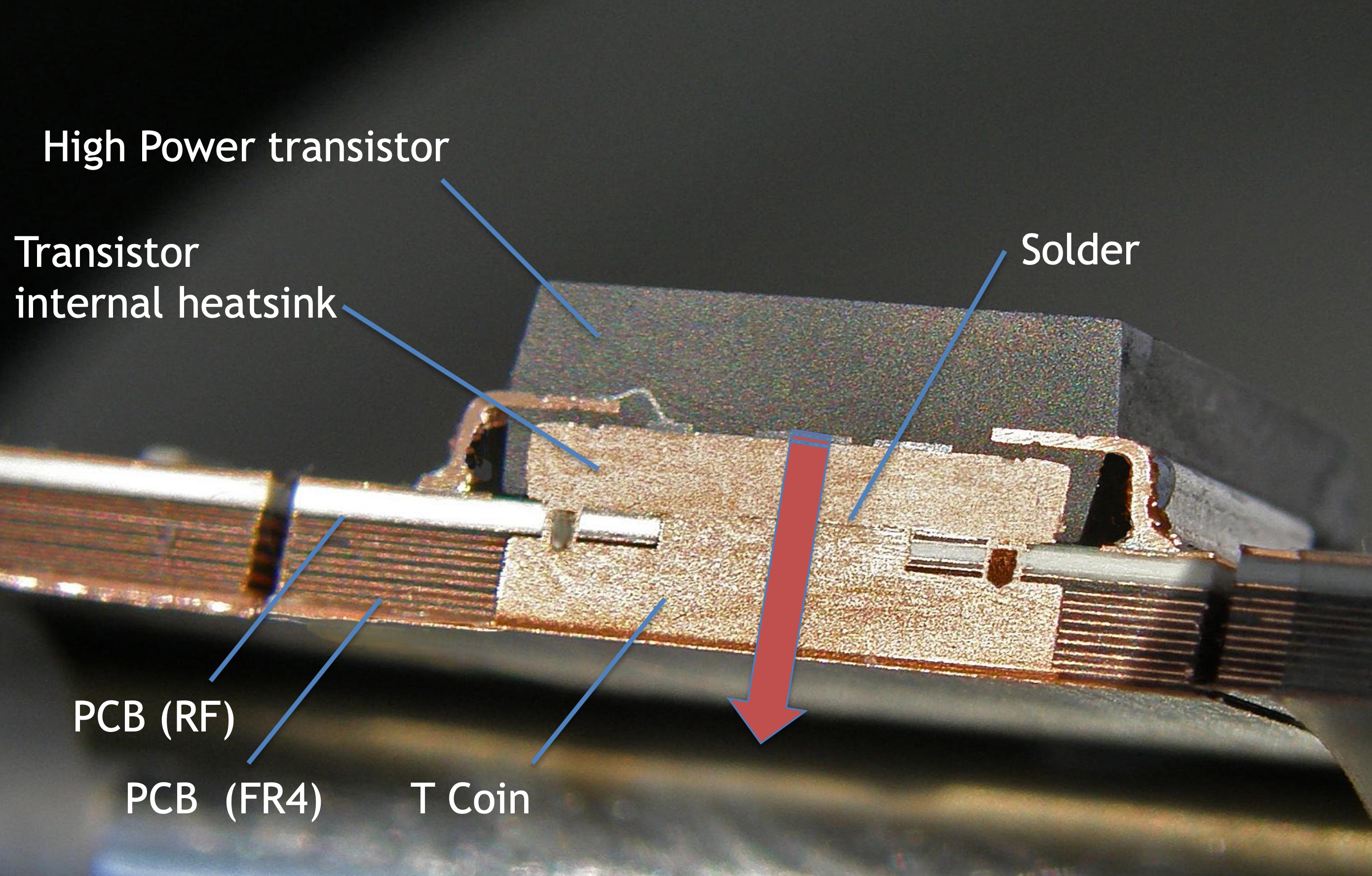 Часто copper coin используется в сложных радиочастотных платах чтобы снимать тепло с полупроводников на выходе передатчика.
