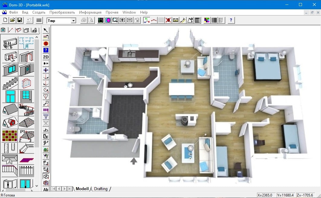 Дом-3D - уникальная программа, которая необходима для проектирования интерьера домов и квартир в 3D. Включает в себя большой каталог элементов интерьера, корпусной и мягкой мебели.