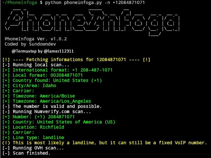 Phoneinfoga — инструмент для сбора информации и разведки OSINT ( разведка с открытым исходным кодом ), который собирает различную информацию о предоставленных телефонных номерах с бесплатных ресурсов.