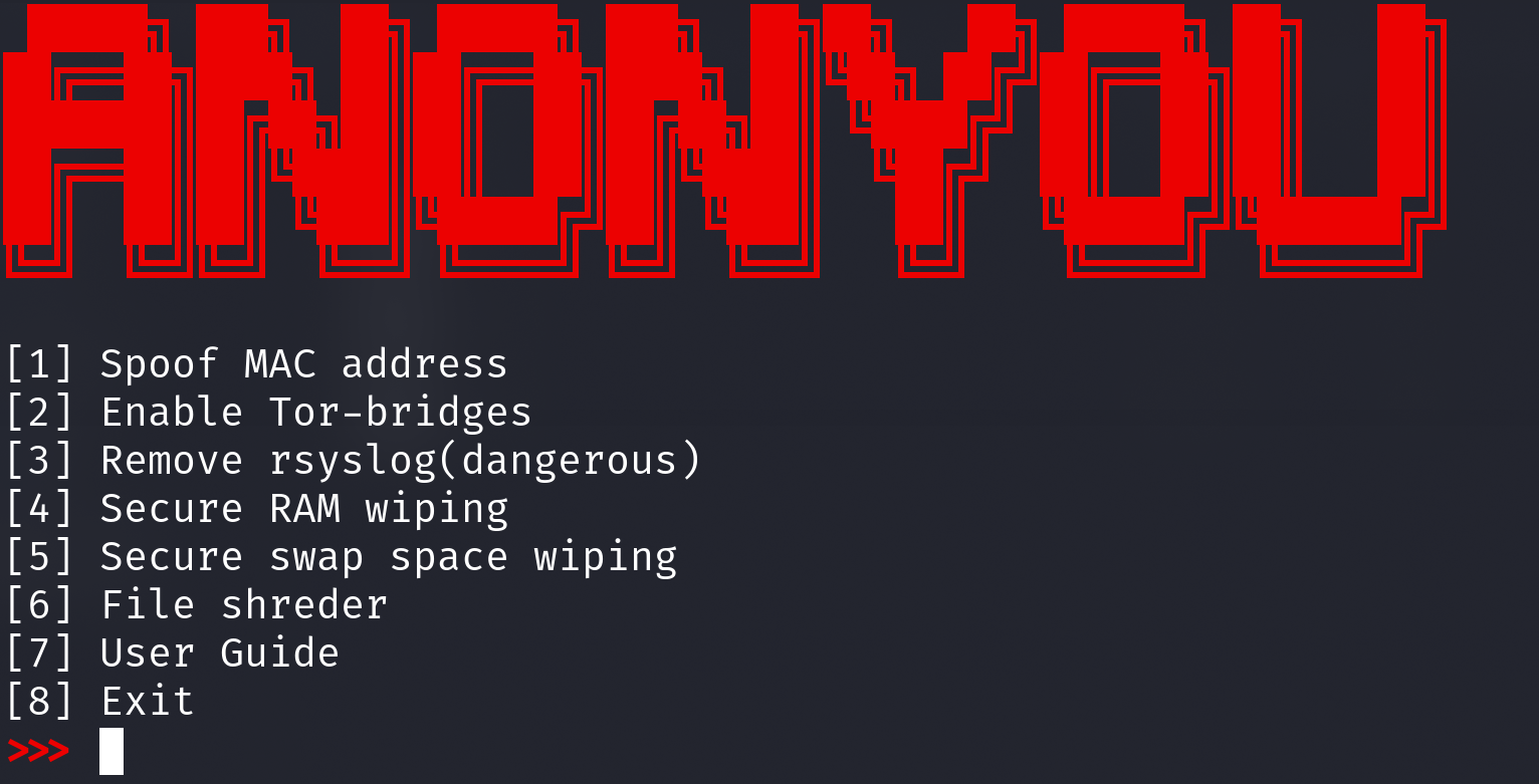 AnonYou бесплатная утилита с открытым исходным кодом, написанная на bash, которая позволяет быстро выполнять действия, связанные с анонимизацией.