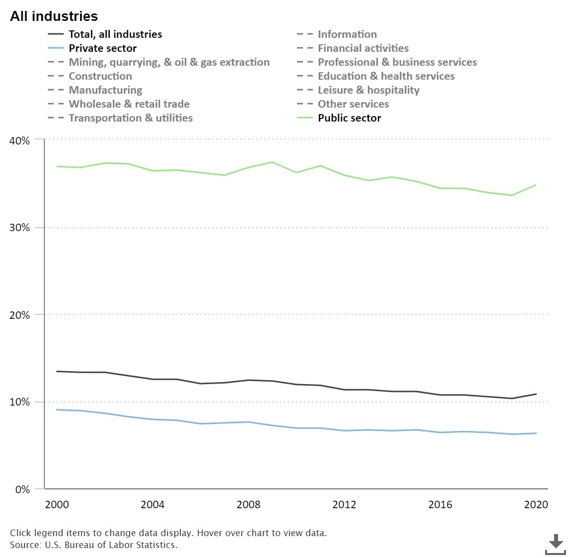Членство в американских профсоюзах с 2000 по 2020-е гг.
