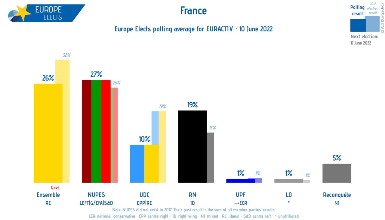 NUPES - левые, объединившиеся вокруг Меланшона. Заявленная цель - лишить Ensemble президентского большинства в парламенте. Кроме движения Меланшона "Неподчинившаяся Франция" в коалиции состоят Социалистическая партия, Французская компартия и объединение "Европа — Экология — "Зеленые".