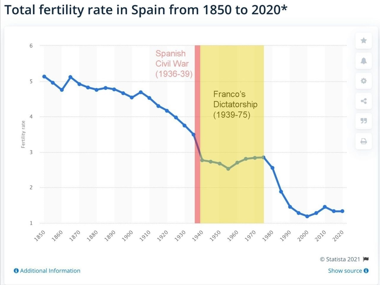 В 1939-1975 Испания значительно увеличила влияние государства на семью через масштабные социальные программы. Поддержку в основном получали многодетные семьи.