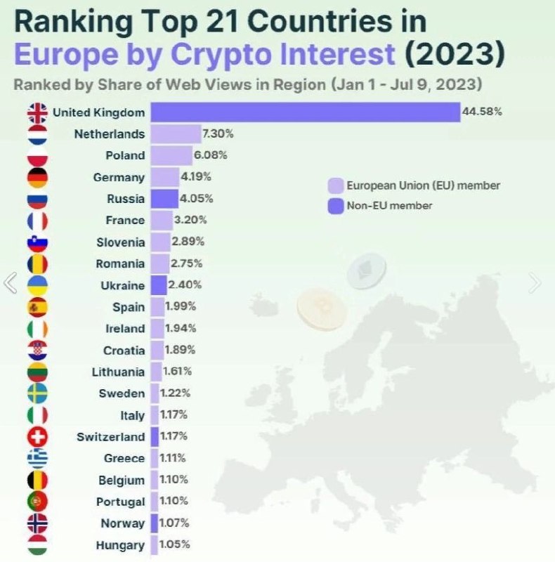 Топ стран Европы по интересу к криптовалютам в 2023 году