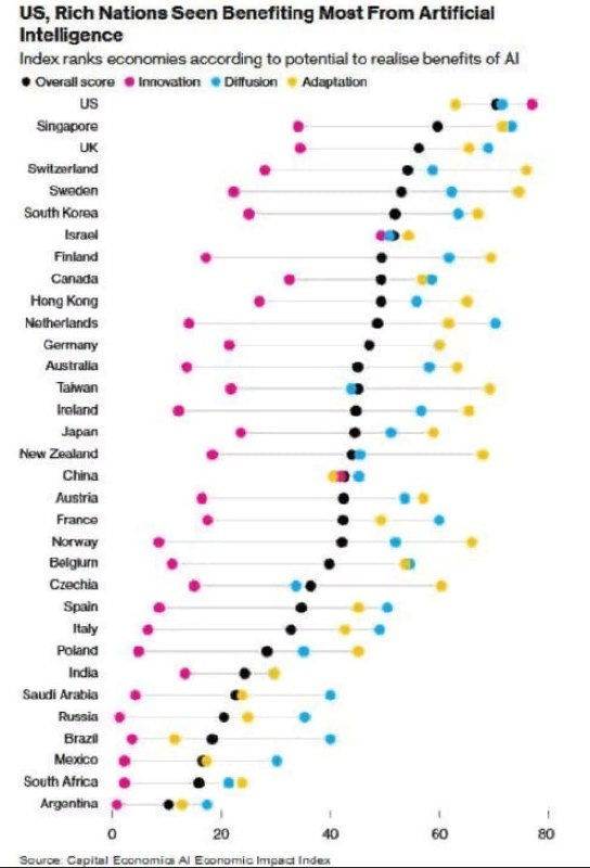 Экономики, которые, как ожидается, получат наибольшие выгоды от искусственного интеллекта
