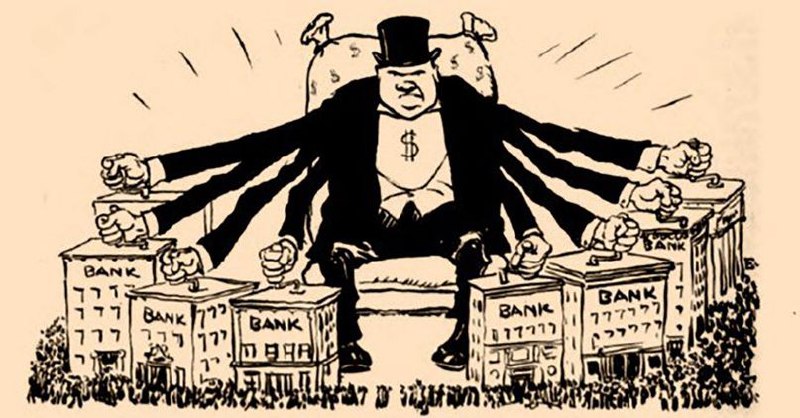 Перейдём к Банку Англии, который был основан в 1694 году. Это был обычный банк, но основанный особым указом парламента, а британское правительство выдало ему монопольное право стать корпорацией. Это был единственный банк во всем королевстве, которому было позволено выпускать акции и продавать их большому количеству людей. Были и другие банки, конечно, но у них было ограниченное количество участников-партнёров, и поэтому они были не так велики. Так Банк Англии стал самым большим. Потом выяснился один чрезвычайно важный момент: стало понятно, что у этого банка огромная мощь из-за его размера, и мелкие банки ничего не могут с этим поделать. Он мог одним махом выкинуть любой другой банк из бизнеса, в любой момент, просто когда хотел. Но как?