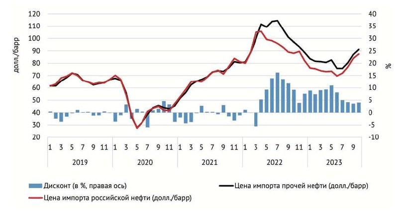 4) Снижения спроса на российскую нефть Индией.