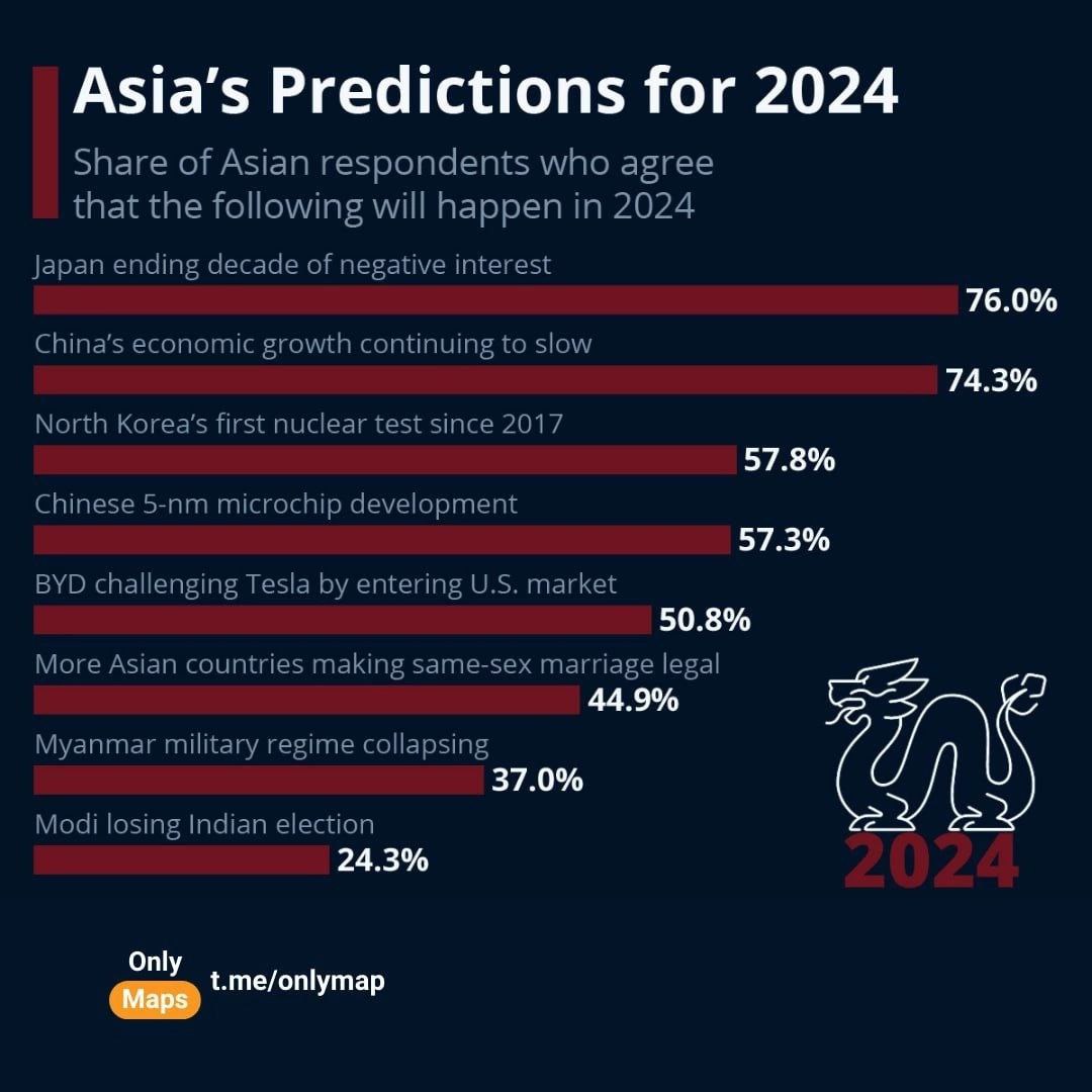 Доля респондентов из Азии, которые согласны с тем, что в 2024 году произойдет следующее: