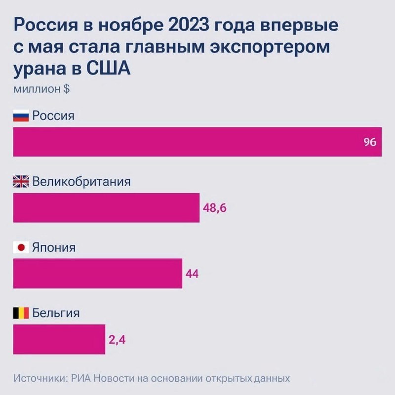 В конце осени прошлого года США покупали уран у России, Британии, Японии и Бельгии. Расходы на топливо составили почти $191 млн. Наибольшая сумма покупок пришлась на Россию.