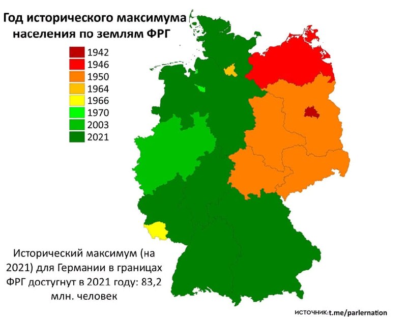 В каком году в разных частях Германии было зафиксировано максимальное количество населения.