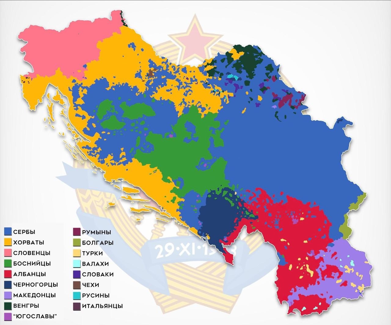Этническая карта Югославии в период с конца Второй Мировой войны до развала государства