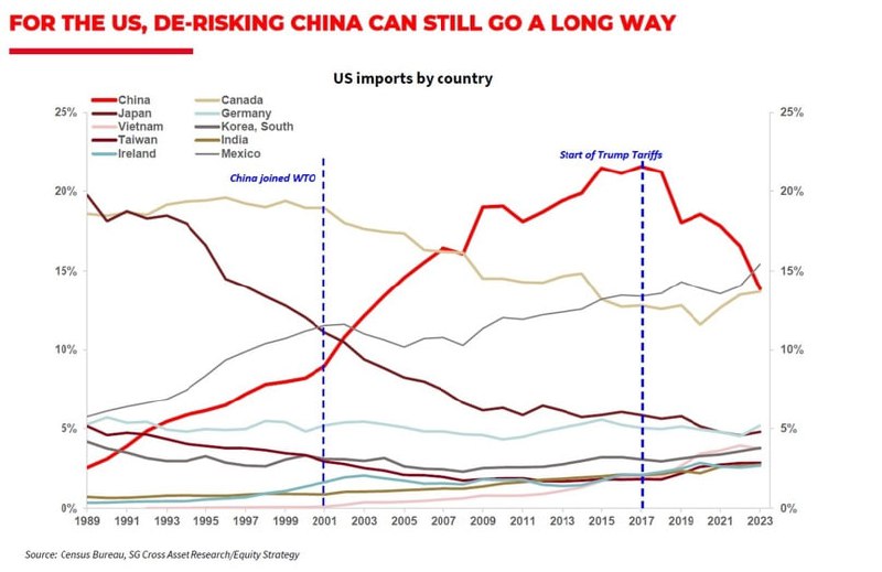 В прошлом году Мексика обогнала Китай, и стала главным торговым экспортёром в США. А в этом году Канада должна обогнать Китай.