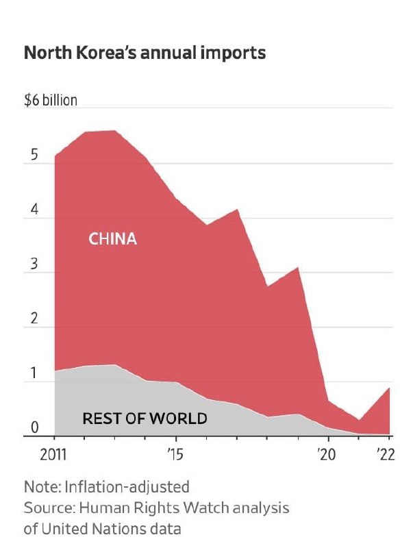 В последние годы объём импорта в Северную Корею резко сократился. Китай перестал поставлять товары своему соседу, строго соблюдая санкции, введенные Организацией Объединенных Наций. Судя по всему, с осени 2023 года Северную Корею поддерживает только Россия, осуществляя поставки продовольствия и нефтепродуктов в обмен на военную продукцию этой страны. По оценкам экономистов из Южной Кореи (поскольку точных данных нет в открытом доступе), с 2017 года ВВП Северной Кореи снизился на 13-15%, а реальные доходы населения упали на 15-17%.