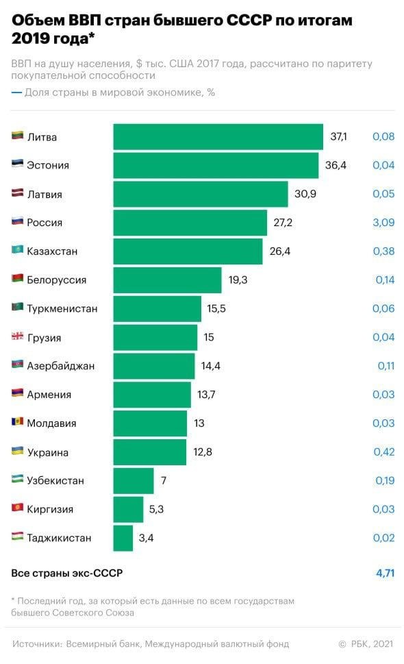Как распределялся ВВП по республикам СССР в 1990 году и ВВП уже бывших республик в 2019 год