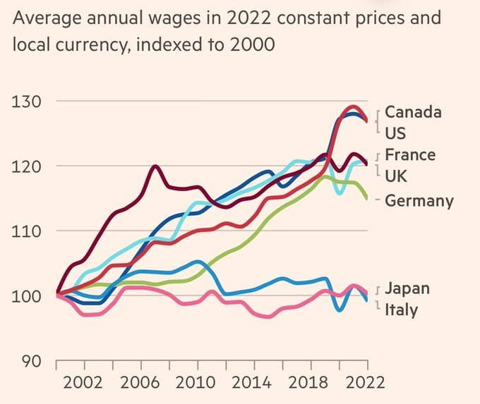 Как выглядит потерянное двадцатипятилетие (с 1999 года) – Италия и Япония.