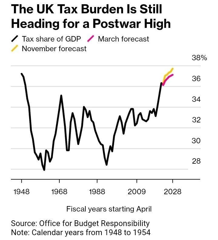 Налоги в Великобритании достигли самого высокого уровня со времён окончания второй мировой.