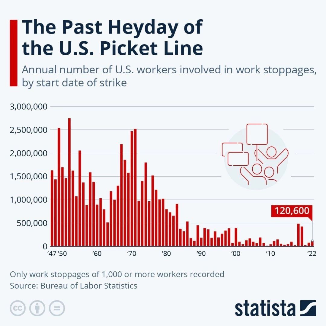 Ежегодное количество американских рабочих, привлеченных к остановке работы, к дате начала забастовки