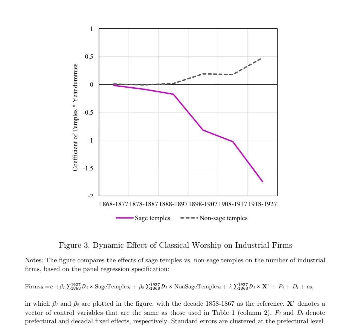 Традиционные ценности могли выступать как сдерживающая сила для экономического прогресса в Китае со второй половины XIX века. Чем больше конфуцианских храмов было в это время в той или иной префектуре, тем медленнее там шла индустриализация, обнаружил исследователь из Гонконгского университета, изучивший данные по 269 префектурам Китая за 1858-1927 гг.: классическая религия не поощряла современные знания.