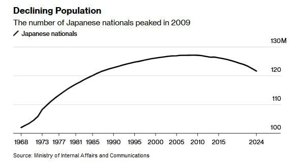 Население Японии сокращается самыми быстрыми темпами с момента начала сбора данных в 1960-х годах, в условиях демографического кризиса.