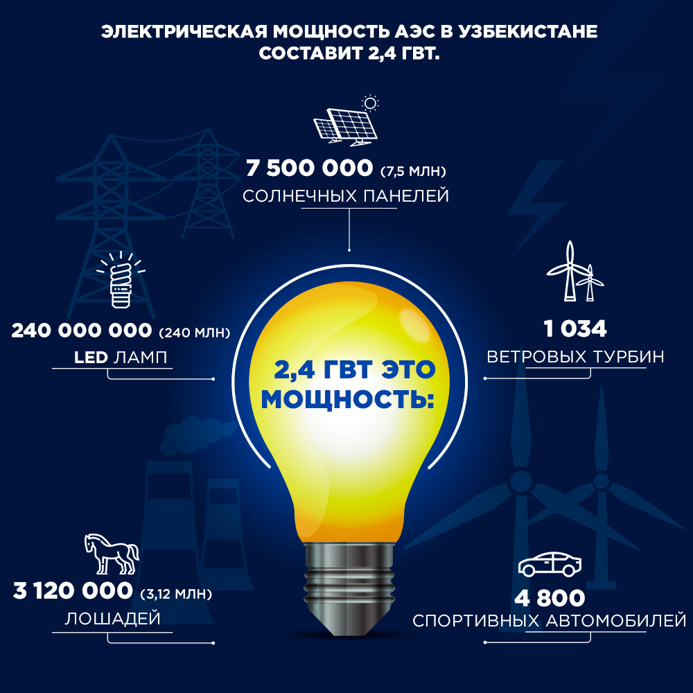 Электрическая мощность АЭС в Узбекистане составит 2,4 ГВт.. Решили показать для наглядности сколько это =)