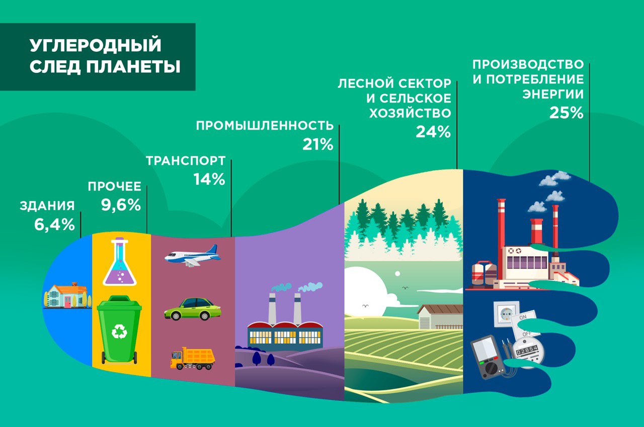 В продолжение вчерашней темы рассмотрим, какой углеродный след оставляет та или иная отрасль.
