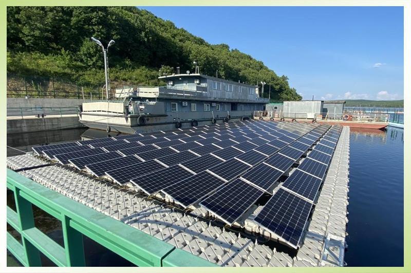В водохранилище Нижне-Бурейской ГЭС смонтирована первая в России мобильная наплавная солнечная электростанция. Она представляет собой понтонный модуль со 140 фотоэлементами общей площадью 475 кв. м.