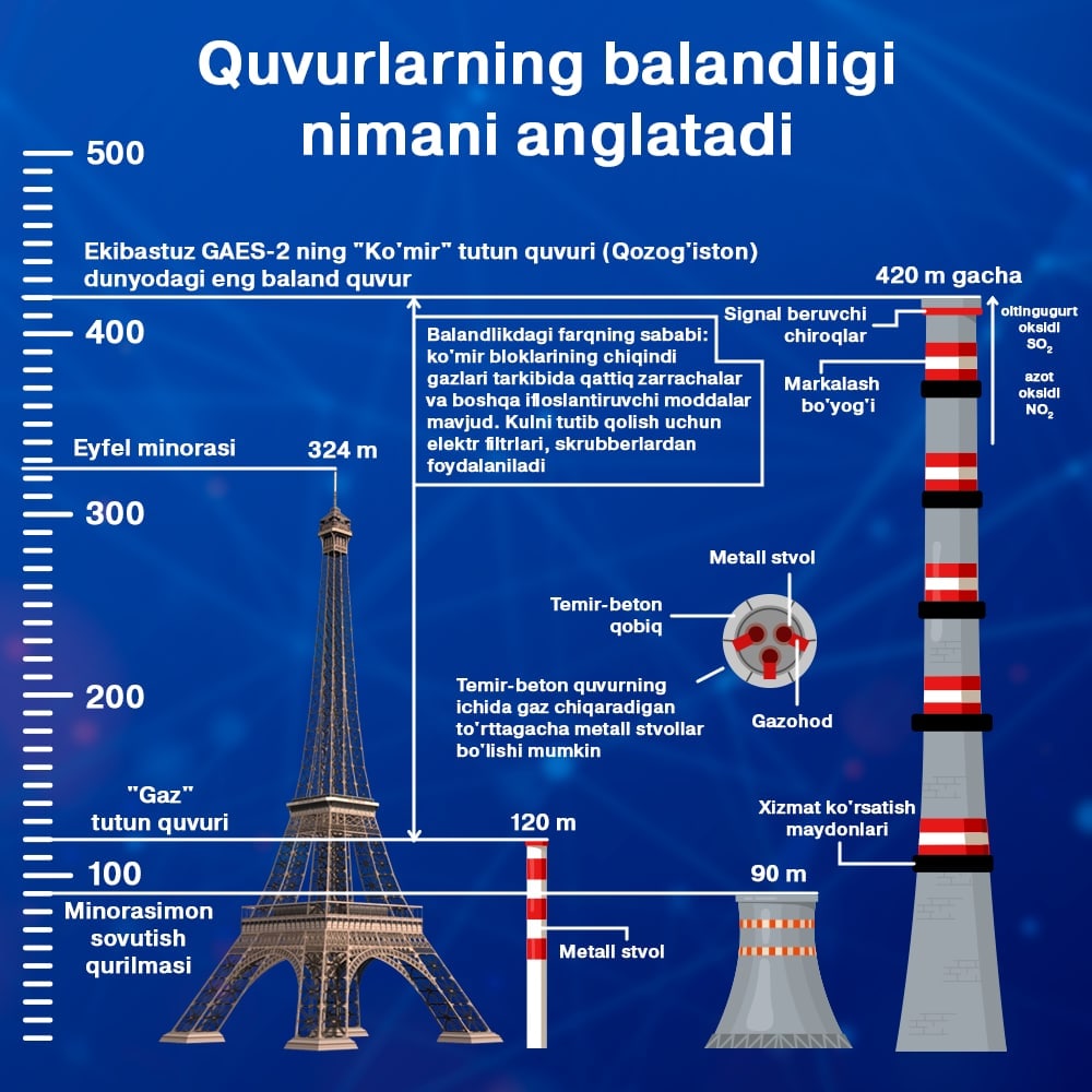 Дўстлар, бугун кўмир станцияларининг қувурлари нима сабабдан бу даражада баландлиги ҳақида гапириб берамиз
