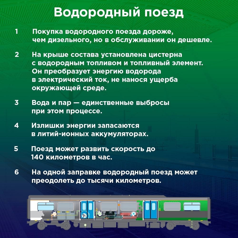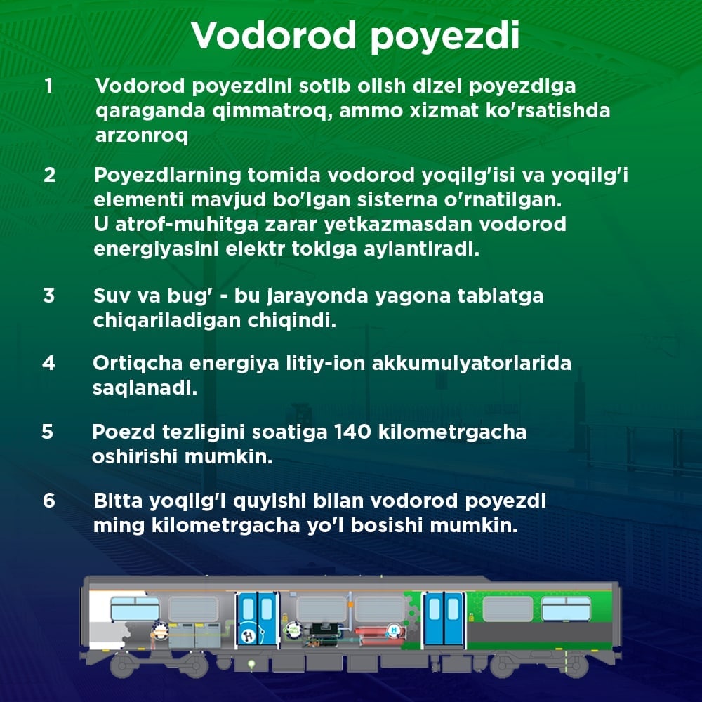 2018-йил 17-сентябрь куни дунёдаги биринчи водород поезди йўловчилари билан Қуйи Саксония (Германия) даги маршрут бўйича йўлга тушди. Водород ёқилғисида ишлайдиган поезд Франция компанияси Alstom томонидан ясалган.