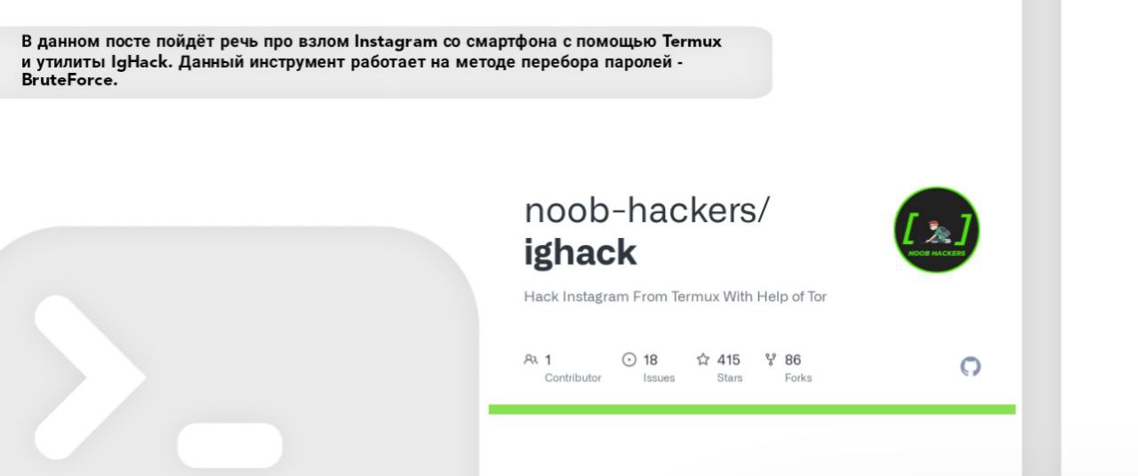 В данном посте пойдёт речь про взлом Instagram со смартфона с помощью Termux и утилиты IgHack. Данный инструмент работает на методе перебора паролей - BruteForce.